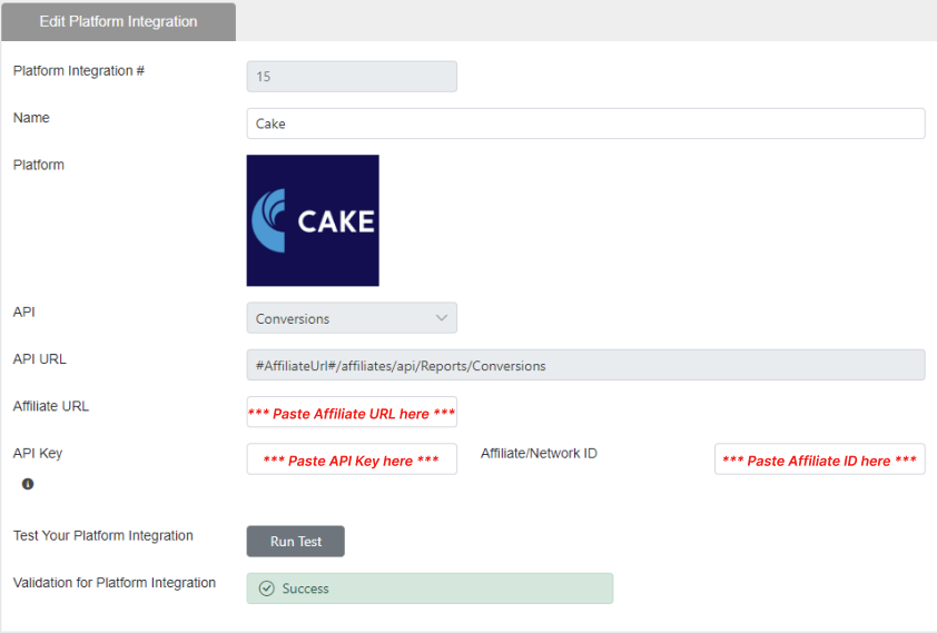 ¶ 3. Finally, enter your Affiliate URL, API Key, and Affiliate ID into the appropriate fields in EmailElement: