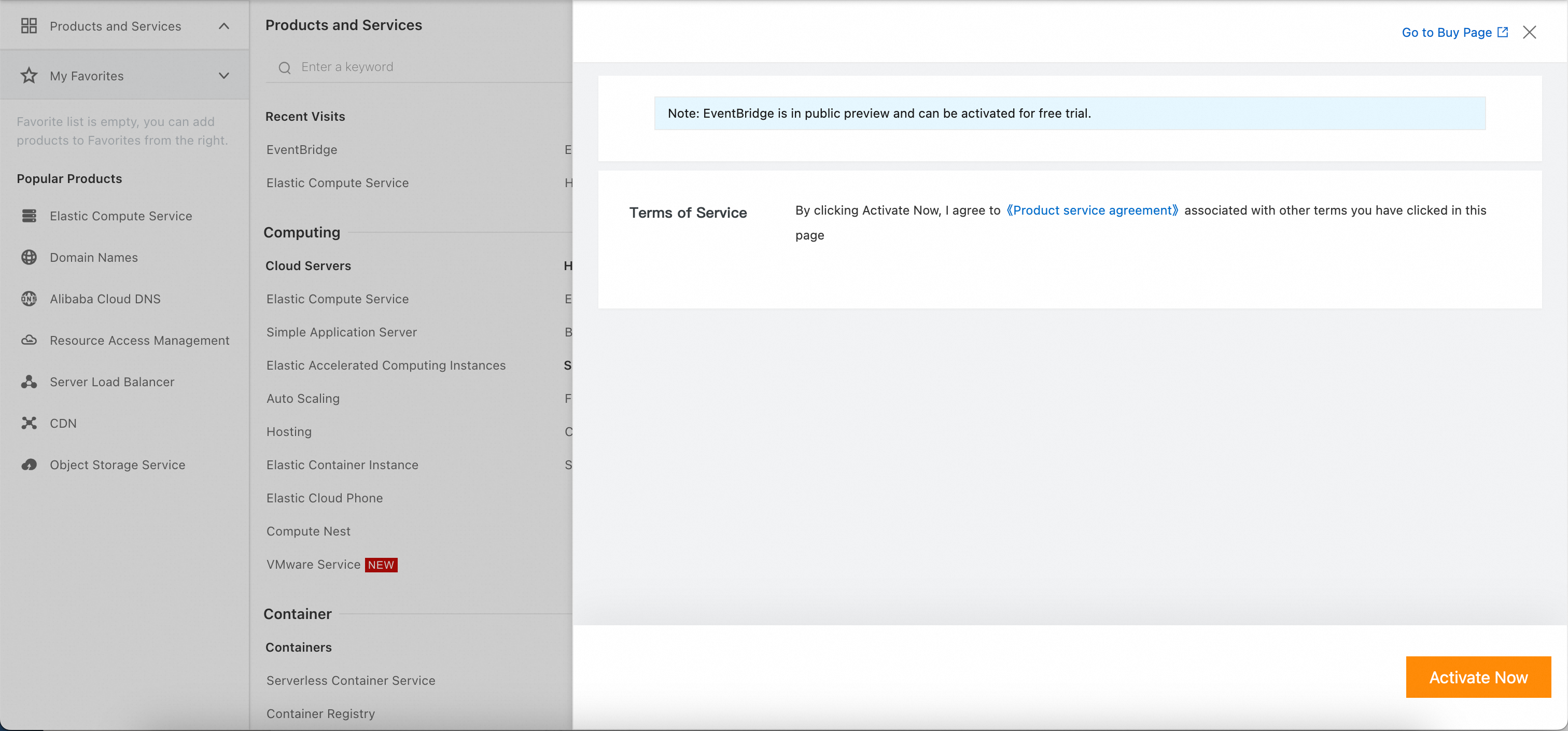 Once on the EventBridge page, select “Activate Now” and follow all the prompts.