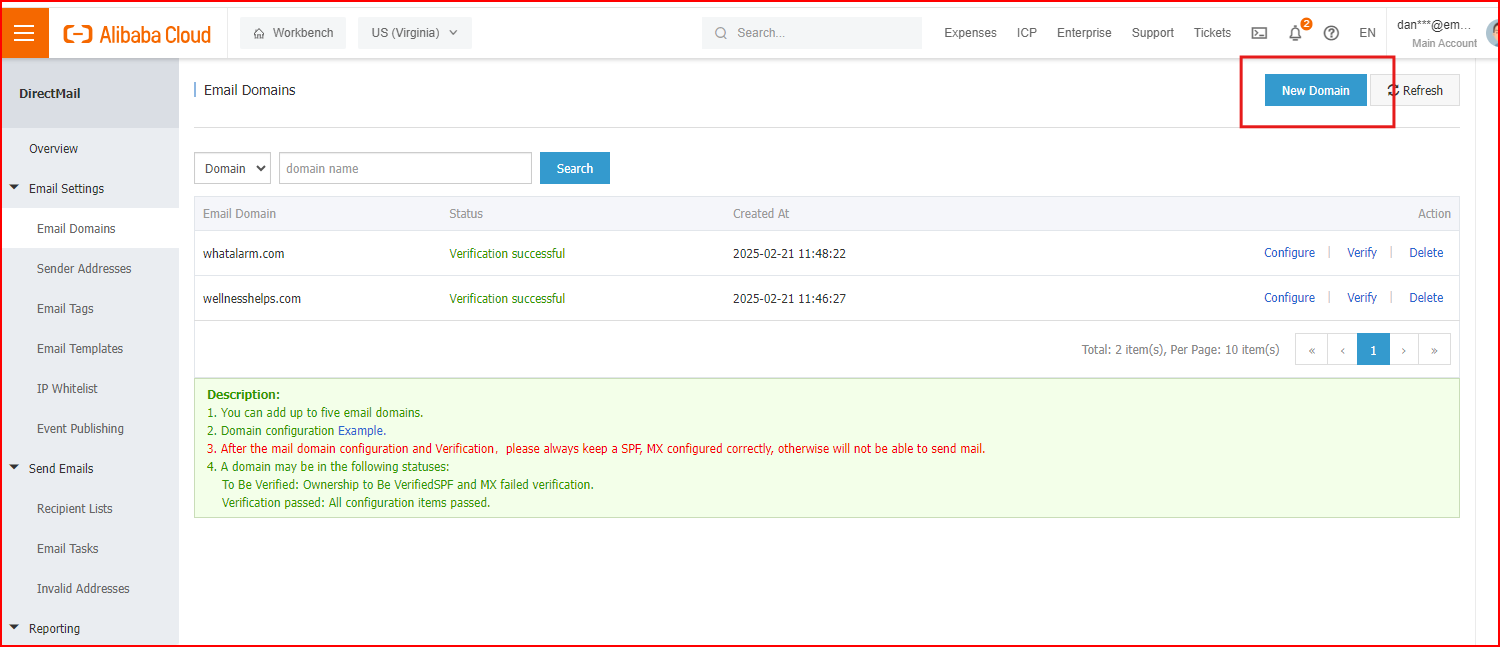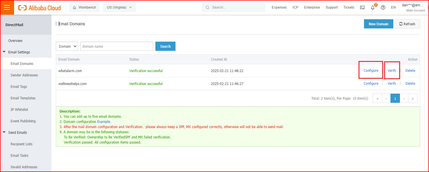 Add an Email Domain and Configure it