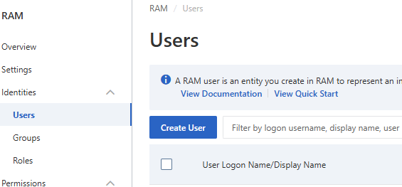 Enter a “Logon Name” and check the “Using permanent AccessKey to access” option, then hit OK to finish creating the User