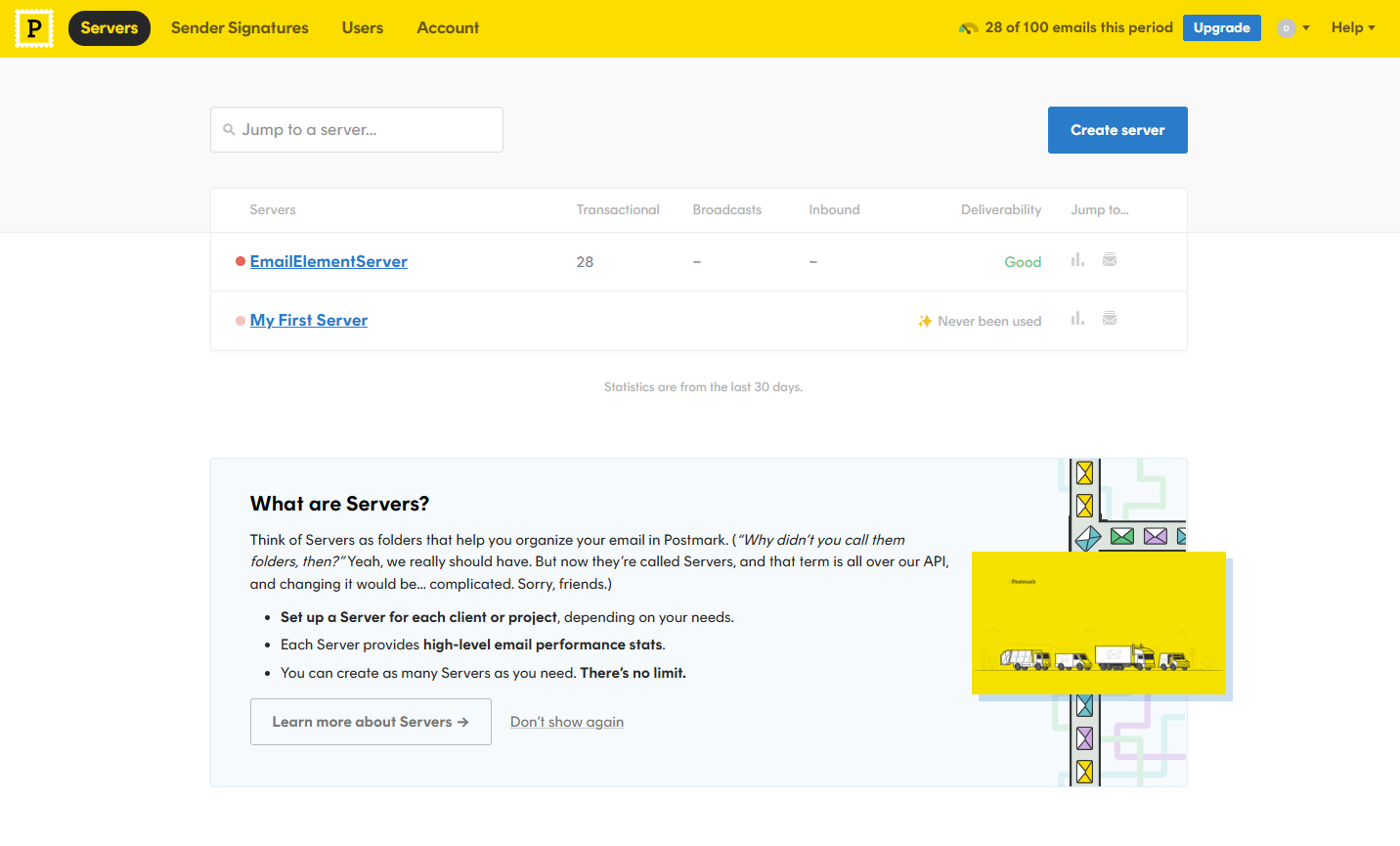 From the Postmark home page, select the Servers tab, then select your Server from the list